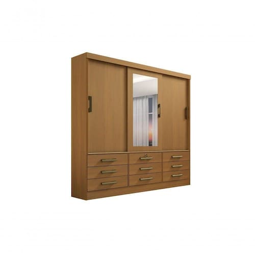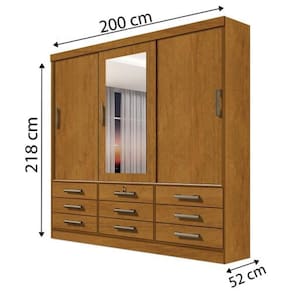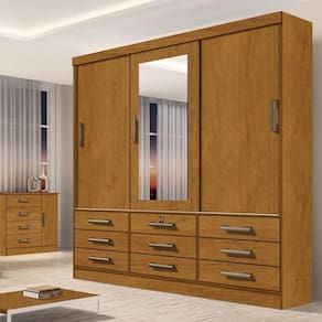 Guarda-roupas 3 Portas 9 Gavetas Com Espelho Meridian Cinamomo