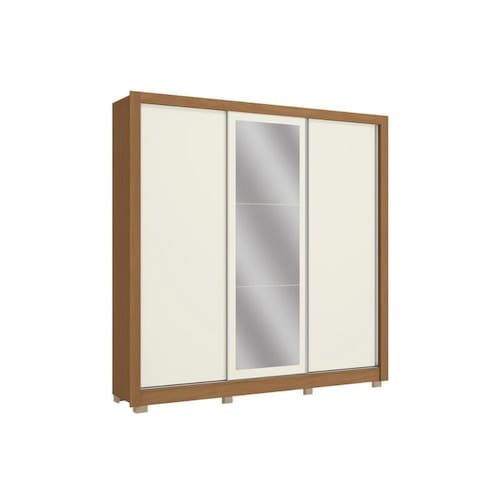 Guarda Roupa Casal 3 Portas de Correr (1 c/ Espelho) e 3 Gavetas c/ Pés CB04M570 Flex Canela/Canela ou Off White - Kappesberg