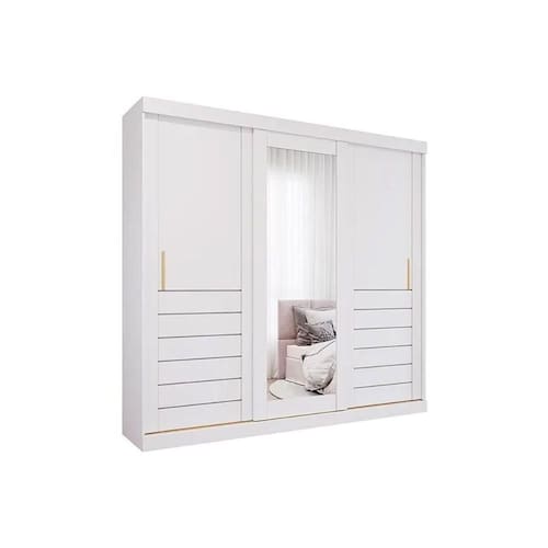 Guarda Roupa Casal 3 Portas de Correr (1 c/ Espelho) e 6 Gavetas Cecilia Branco - Panan