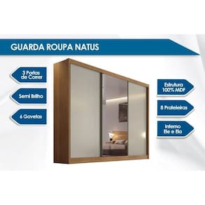 Guarda Roupa Casal 3 Portas de Correr (1 c/ Espelho) e 6 Gavetas Natus/Duna Cumaru - Horizonte