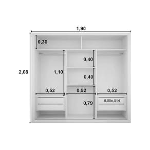Dimensões(Cm): Comprimento(Profundidade): 48cm x Largura: 190cm x Altura: 215cm