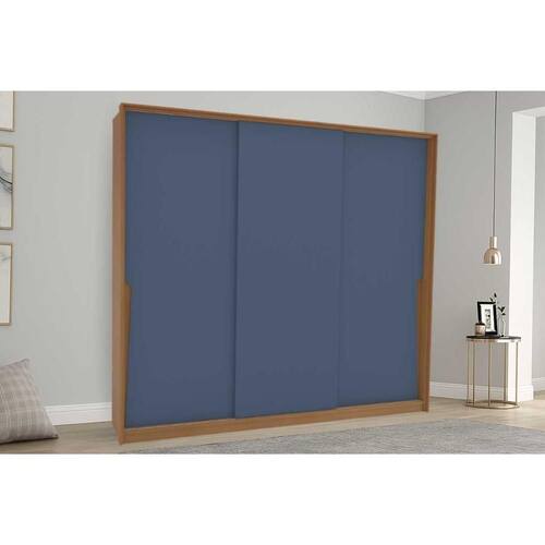 Guarda Roupa Casal 3 Portas de Correr e 4 Gavetas Porto Freijo/Azul - Politorno