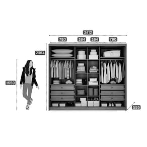 Dimensões(Cm): Comprimento(Profundidade): 56cm x Largura: 241cm x Altura: 236cm