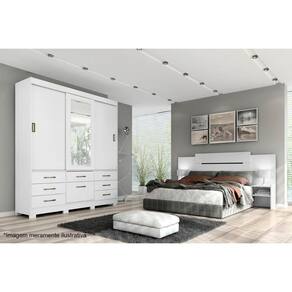 Guarda Roupas 3 Portas De Correr E 7 Gavetas C- Espelho Luiza Avelã-Off White - Panan - Branco