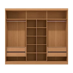 Acabamento: Pintura Touch / Pintura Touch / Fosco | Cor: Canela | Corrediças: Telescópicas | : 3 meses para defeito de fabricação | Gavetas: Internas | Matéria-prima: MDF | Peso suportado por cabideiro: 10 Kg | Peso suportado por cada prateleira: 7 kg | Puxadores: Alumínio | Quantidade de calceiros: 2 | Quantidade de gavetas: 4 | Quantidade de portas: 3 | Quantidade de prateleiras: 11 | Sistema de montagem: Parafuso Philips / Parafuso Philips e Minifix | Tipo de porta: Correr | Duração da : 3 meses | Montagem: Necessita montagem | Tipo de : do fabricante | Requer montagem: Sim | Materiais da estrutura: MDF