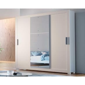 Guarda Roupas 3 Portas De Correr Veneza Luxo E 4 Gavetas C/ Pés Branco - Rufato