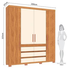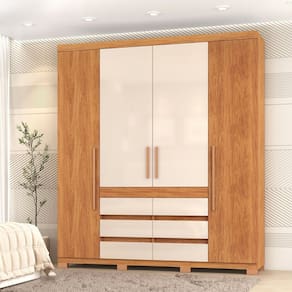 O roupeiro Cairo foi pensado para você que é extremamente exigente quando o assunto é organização de seus pertences. Ele é fabricado em MDP 1,2cm com frentes em 1,5cm, possui 4 portas de bater e 6 gavetas externas garantindo perfeita arrumação e ordenação dos mais variados objetos pessoais. As corrediças são todas telescópicas, o que permite que as gavetas deslizem de forma uniforme e saiam completamente do móvel, facilitando o acesso a todo o conteúdo. Além de ser muito prático para seu dia-a-dia, o roupeiro Cairo vai deixar seu quarto mais bonito e moderno, pois possui design diferenciado e elegante. O interno na cor linho é um charme à parte. O acabamento do móvel é Pintura UV. As dobradiças metálicas possuem amortecimento. Possui 2 cabideiros e 2 calceiros todos em alumínio. Apaixone-se! Acabamento da Prateleira: Pintura UV Escala de Brilho da Prateleira: Brilhante Possui Cabideiros: Sim Acabamento da Gaveta: Pintura UV Escala de Brilho da Gaveta: Brilhante Possui Organizador de Gaveta: Não Acabamento da Porta: Pintura UV Escala de Brilho da Porta: Super-Brilho Altura dos Pés: 7 cm Altura Máxima dos Pés: 7.0000 Ambiente Principal: Quarto codigo_ean: 7900288057600 Complexidade da Montagem: Baixa: pode ser montado por uma pessoa sozinha Cor: Cinamomo/Off White Cor da Porta: Branco Cor do Produto: Cinamomo/Off White Cor Interna: Linho Escala de Brilho: Brilhante Espessura da Estrutura (mm): 12 mm Espessura das Portas (mm): 15 mm Espessura das Prateleiras (mm): 12 mm Espessura do Fundo (mm): 3 mm Espessura do Fundo das Gavetas (mm): 3 mm Gaveta com Chave: Não Guarda-Roupa Suporta Até (kg): 160 kg Informações Complementares: Caixa 12mm Frentes 15mm, Acabamento Pintura UV, Interno cor linho, Puxadores cor cobre, Dobradiças com amortecimento, cabideiros e calceiros em alumínio, corrediças telescópicas, pés cor cobre Itens Inclusos: 1 Guarda Roupas + 1 Manual de Montagem Linha ou Coleção: Dormitórios Manual de Montagem e Instalação: https://product-hub-prd.madeiramadeira.com.br/976506/documents/bedfeda8-2745-48be-bc91-190fdd321f24266359040651738677845162.pdf Marca: Fellicci Material da Gaveta: MDP Material da Porta: MDP Material da Prateleira: MDP Material dos Pés: Plástico Material Principal: MDP modular: Não Necessita Montagem: Sim Origem do Produto: Nacional Peso: 124,95 kg Peso Máximo por Gaveta: 5 kg Peso Máximo por Prateleira: 10 kg Possui Calceiros: 02 Possui Espelho: Não Possui Pés: 08 Possui Portas: Sim Possui Prateleiras: Sim Produto Montado: Sim Quantidade de Cabideiros: 02 Cabideiros Quantidade de Gavetas: 06 Gavetas Quantidade de Prateleiras: 06 Prateleiras Recomendações de Uso, Manutenção e Limpeza: Pano levemente úmido Sistema de Montagem: parafusos, bucha, prego Suporta Até (kg): 160 kg Tipo de Corrediça da Gaveta: Metálica Telescópica Tipo de Dobradiça/Corrediça da Porta: Metálica Tipo de Gaveta: Externa Tipo de Guarda-Roupa: Casal Tipo de Puxador da Gaveta: Embutido Tipo de Puxador da Porta: Externo