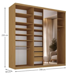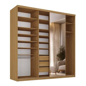 Conta com gavetas com corrediças telescópicas para deslizamento suave, além de espelho inteiriço na porta de correr, que traz elegância e amplitude ao quarto. Sua distribuição interna inteligente facilita a organização do dia a dia, oferecendo qualidade de móveis planejados em um produto pronto para transformar seu espaço. Acabamento da Prateleira: BP Melamínico Escala de Brilho da Prateleira: Fosco Possui Cabideiros: Sim Acabamento da Gaveta: BP Melamínico Escala de Brilho da Gaveta: Fosco Possui Organizador de Gaveta: Não Acabamento da Porta: BP Melamínico Escala de Brilho da Porta: Fosco Material do Puxador da Porta: Alumínio Acabamento dos Pés: BP Melamínico Altura do Espelho: 223 cm Altura dos Pés: 6 cm Altura Máxima dos Pés: 6.0000 Ambiente Principal: Quarto codigo_ean: 7900288348210 Complexidade da Montagem: Alta: deve ser montado por um montador especializado Cor: Nogueira Cor da Porta: Espelhado Cor do Produto: Nogueira Cor Interna: Nogueira Escala de Brilho: Fosco Espessura da Estrutura (mm): 15 mm Espessura das Portas (mm): 18 mm Espessura das Prateleiras (mm): 15 mm Espessura do Espelho: 3 mm Espessura do Fundo (mm): 3 mm Espessura do Fundo das Gavetas (mm): 3 mm Formato do Espelho: Retangular Gaveta com Chave: Não Itens Inclusos: 1 Guarda-Roupa, Kit Ferragem e Manual de Montagem Largura do Espelho: 66 cm Linha ou Coleção: Closet Essen Manual de Montagem e Instalação: https://product-hub-prd.madeiramadeira.com.br/520146052/documents/8100df4d-3a66-4efd-a6c3-e95fc87dc1fc343391194517727480540352.pdf Marca: RR Móveis Material da Gaveta: MDF Material da Porta: MDF/Espelho Material da Prateleira: MDF Material dos Pés: MDF Material Principal: MDF modular: Não Necessita Montagem: Sim Origem do Produto: Nacional Peso: 180 kg Peso Máximo por Gaveta: 10 kg Peso Máximo por Prateleira: 10 kg Porta Janelada: Não Possui Calceiros: Não Possui Espelho: Sim Possui Pés: Rodapé Possui Portas: Sim Possui Prateleiras: Sim Produto Montado: Sim Quantidade de Espelho: 01 Quantidade de Gavetas: 03 Gavetas Quantidade de Portas com Espelhos: 1 Porta com Espelho Quantidade de Prateleiras: 14 Prateleiras Recomendações de Uso, Manutenção e Limpeza: Pano umido Sapatas Niveladoras: Sim Sistema de Montagem: Parafusos, Cavilhas e Cantoneiras Tipo de Corrediça da Gaveta: Metálica Telescópica Tipo de Dobradiça/Corrediça da Porta: Alumínio Tipo de Fixação do Espelho: Silicone Tipo de Gaveta: Interna Tipo de Guarda-Roupa: Casal Tipo de Puxador da Gaveta: Não Possui Tipo de Puxador da Porta: Externo Marca: Não Informado