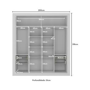 Funcionalidade e elegância: Com 4 gavetas equipadas com corrediças telescópicas, este modelo oferece manuseio silencioso e suave, permitindo fácil acesso e ampla organização dos seus pertences. Ambos de alumínio, os puxadores dão um charme especial, enquanto os cabideiros suportam até 3kg em cada e proporcionam praticidade para armazenar roupas longas e curtas.