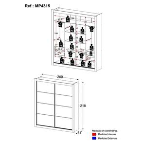 Altura 218cm | Largura 200cm | Profundidade 51cm