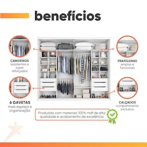 DIFERENCIAL: Guarda Roupa feito 100% em MDF de alta qualidade, corrediças Telescópicas