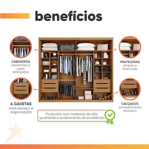 DIFERENCIAL: Guarda Roupa feito 100% em MDF de alta qualidade, corrediças Telescópicas