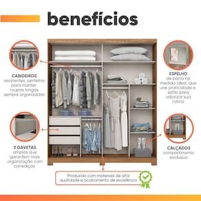Ampla Capacidade: Ideal para casais, com espaço interno pensado para acomodar roupas longas e uma grande quantidade de itens.