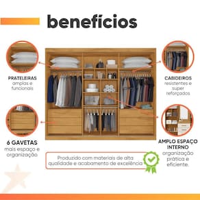Importante sobre a entrega: A entrega é realizada até a portaria ou porta de entrada do endereço indicado, desde que o acesso seja permitido. Para locais com portaria, a entrega será feita no piso térreo. Não realizamos montagem, desmontagem, transporte por escadas ou içamento. É responsabilidade do cliente verificar se as dimensões do produto são compatíveis com portas, elevadores e corredores. Evite imprevistos: confira todos os detalhes antes de concluir sua compra. MEDIDAS:: A = 235 cm L = 226 cm P = 56 cm | MEDIDAS DO ESPELHO:: A = 216,7 cm L = 70,3 cm | PRATELEIRAS SUPORTAM ATÉ:: 4 kg / 6 kg | GAVETAS SUPORTAM ATÉ:: 4 kg | CABIDEIROS SUPORTAM ATÉ:: 12 kg | PESO:: 211,4 kg | GUARDA ROUPAS SUPORTA ATÉ:: 110 kg | MODELO:: Guarda Roupas Casal 3 Portas de Correr Com Espelho 6 Gavetas Argel | MARCA:: Europa | TIPO DE PINTURA:: UV | MATERIAL DA ESTRUTURA:: MDF | ESPESSURA DO MATERIAL DA ESTRUTURA:: 15 mm | TIPO DE PORTA:: Correr, maior praticidade no dia a dia | POSSUI ESPELHO:: Sim | QUANTIDADE DE PORTAS:: 3 | QUANTIDADE DE GAVETAS:: 6 | CORREDIÇAS:: Telescópicas, abertura suave | QUANTIDADE DE PRATELEIRAS:: 10 | QUANTIDADE DE CABIDEIROS:: 4 | MATERIAL DO CABIDEIRO:: Alumínio | MATERIAL DO PUXADOR:: Alumínio | PÉS:: 8 sapatas plásticas | DIFERENCIAL:: Portas de correr elegantes com um amplo espelho central, Produto Plex - escolha a cor da porta na hora da montagem, corrediças telescópicas de abertura suave. | ITENS INCLUSOS:: 1 Guarda Roupa, 1 Manual de montagem, 1 Kit Parafusos. | SISTEMA DE MONTAGEM:: Parafuso, minifix e cavilha | INSTRUÇÕES E CUIDADOS:: Para limpeza de seu móvel, use uma flanela limpa e seca. Não utilize produtos químicos que possam danificar o produto. | GARANTIA:: 3 Meses | AVISO:: Importante sobre a entrega: A entrega é realizada até a portaria ou porta de entrada do endereço indicado, desde que o acesso seja permitido. Para locais com portaria, a entrega será feita no piso térreo. | Altura: 235 cm | Inclui manual de montagem: Sim | Largura: 226 cm | Profundidade: 56 cm | Requer montagem: Sim | Altura da embalagem: 53 cm | Comprimento da embalagem: 240 cm | Largura da embalagem: 78 cm | Peso da embalagem: 21140 g | Tipo da embalagem: sem embalagem adicional | Cor: Madeirado/Off White