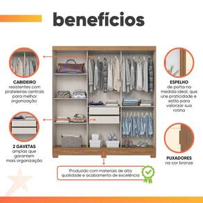 Guarda Roupas Casal 3 Portas De Correr Com Espelho Ripado 2 Gavetas Lotus Madeirado/off White