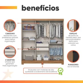 ITENS INCLUSOS: 1 Guarda Roupa, 1 Manual de montagem, 1 Kit Parafusos.