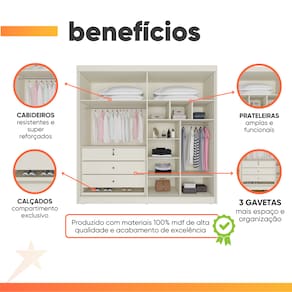 ITENS INCLUSOS: 1 Guarda Roupa, 1 Manual de montagem, 1 Kit Parafusos.
