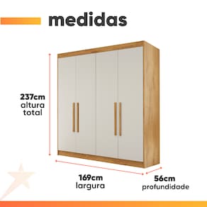 MODELO: Guarda Roupas Casal 4 Portas 3 Gavetas Tunis