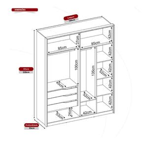 Dimensões do produto montado: Altura: 230cm | Largura: 180cm | Profundidade: 55cm *Você pode consultar as medidas detalhadas na imagem técnica do produto.