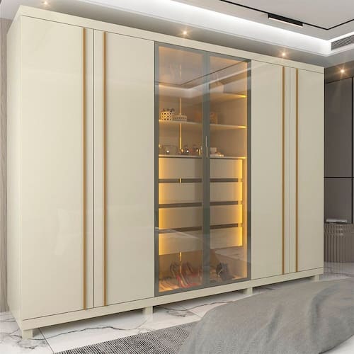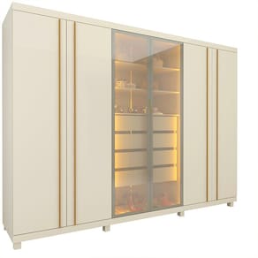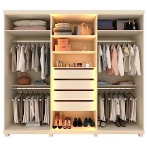 O Roupeiro Absolut Reflecta possui duas portas centrais em vidro reflecta, com molduras em alumínio e led vertical em cor quente em suas divisórias internas, é uma opção moderna e funcional para sua casa. Com 63cm de profundidade, 4 gavetas espaçosas de corrediças telescópicas, sendo uma com divisórias porta joias, este móvel foi pensado para facilitar sua rotina e dar ponto de destaque na decoração e seu quarto.! Acabamento da Prateleira: Pintura Texturizada UV Escala de Brilho da Prateleira: Semi-Brilho Possui Cabideiros: Sim Acabamento da Gaveta: Pintura Texturizada UV Escala de Brilho da Gaveta: Semi-Brilho Possui Organizador de Gaveta: Sim Acabamento da Porta: Pintura Texturizada UV Escala de Brilho da Porta: Semi-Brilho Material do Puxador da Porta: MDF Acabamento dos Pés: Pintura Altura dos Pés: 6,5 cm Ambiente Principal: Quarto codigo_ean: 7900288083531 Complexidade da Montagem: Alta: deve ser montado por um montador especializado Cor: Off White Cor do Produto: Off White Cor do Puxador: Marrom Cor Flex: Não Cor Interna: Off White Escala de Brilho: Brilhante Espessura da Estrutura (mm): 15 mm Espessura das Portas (mm): 15 mm Espessura das Prateleiras (mm): 15 mm Espessura do Fundo (mm): 3 mm Espessura do Fundo das Gavetas (mm): 3 mm Gaveta com Chave: Não Itens Inclusos: 1 Guarda-Roupa + 1 Manual de Montagem Linha ou Coleção: Absolut New Reflecta Manual de Especificação Técnica: https://product-hub-prd.madeiramadeira.com.br/899100/documents/7d8970fc-85f5-4bda-b32c-1da2019cb546absolutnewmanualdemontagem.pdf Manual de Montagem e Instalação: https://product-hub-prd.madeiramadeira.com.br/899100/documents/43dee8f6-9d22-4dde-8e87-b86d9267043eabsolutnewmanualdemontagem.pdf Marca: Gelius Móveis Material da Gaveta: MDF Material da Porta: MDF/Vidro Material da Prateleira: MDF Material dos Pés: Madeira Maciça Material Principal: MDF modular: Não Montagem Flex: Não Necessita Montagem: Sim Origem do Produto: Nacional Peso: 230 kg Peso Máximo por Gaveta: 5 kg Peso Máximo por Prateleira: 10 kg Possui Calceiros: 02 Possui Espelho: Não Possui Painel de TV: Não Possui Penteadeira: Não Possui Pés: 08 Possui Portas: Sim Possui Prateleiras: Sim Possui Sapateira: Não Quantidade de Cabideiros: 02 Cabideiros Recomendações de Uso, Manutenção e Limpeza: A limpeza do produto deve ser feita por meio do uso de um pano, umedecido com água, e um pano seco. É importante para fazer a limpeza do móvel nunca utilizar produtos químicos ou abrasivos. Para conservar o padrão de qualidade dos produtos Gelius, nunca arraste um móvel se este estiver cheio. Nunca puxe o móvel de frente para você, pois ele pode balançar e provocar acidentes. Sistema de Montagem: Convencional: parafusos, pregos, cavilhas, etc. Suporta Até (kg): 160 kg Tipo de Corrediça da Gaveta: Metálica Telescópica Tipo de Dobradiça/Corrediça da Porta: Aço Tipo de Gaveta: Interna Tipo de Guarda-Roupa: Casal Tipo de Madeira Maciça dos Pés: Pinus Tipo de Puxador da Gaveta: Não Possui Tipo de Puxador da Porta: Externo
