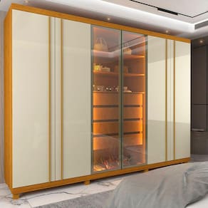 O Roupeiro Absolut Reflecta possui duas portas centrais em vidro reflecta, com molduras em alumínio e led vertical em cor quente em suas divisórias internas, é uma opção moderna e funcional para sua casa. Com 630mm de profundidade, 4 gavetas espaçosas de corrediças telescópicas, sendo uma com divisórias porta joias, este móvel foi pensado para facilitar sua rotina e dar ponto de destaque na decoração e seu quarto. Acabamento da Prateleira: Pintura Texturizada UV Escala de Brilho da Prateleira: Semi-Fosco Possui Cabideiros: 02 Acabamento da Gaveta: Pintura Texturizada UV Escala de Brilho da Gaveta: Semi-Fosco Possui Organizador de Gaveta: Sim Acabamento da Porta: Pintura Texturizada UV Escala de Brilho da Porta: Semi-Fosco Material do Puxador da Porta: MDF Acabamento dos Pés: Pintura Altura dos Pés: 6.5 Ambiente Principal: Quarto Complexidade da Montagem: Alta: deve ser montado por um montador especializado Cor: Marromle/Off White Cor do Produto: Marromle/Off White Cor Flex: Não Cor Interna: Marromle Escala de Brilho: Semi-Fosco Gaveta com Chave: Não Guarda-Roupa Suporta Até (kg): 160 Itens Inclusos: 1 Guarda Roupa, Kit Ferragens e Manual de Montagem. Linha ou Coleção: Absolut New Manual de Especificação Técnica: https://cdn2.madeiramadeira.com.br/atributo/gelius/1378273-absolut-new-manual-de-montagem.pdf Manual de Montagem e Instalação: https://cdn2.madeiramadeira.com.br/atributo/gelius/1378272-absolut-new-manual-de-montagem.pdf Material da Gaveta: MDF Material da Porta: MDF Material da Prateleira: MDF Material dos Pés: Madeira Maciça Material Principal: MDF Montagem Flex: Não Necessita Montagem: Sim Origem do Produto: Nacional Peso: 230 Peso Máximo por Gaveta: 10 Peso Máximo por Prateleira: 10 Possui Calceiros: 02 Possui Espaço para Vestidos Longos: Não Possui Espelho: Não Possui Espelho Interno: Não Possui Ganchos: Não Possui iluminação: Não Possui Painel de TV: Não Possui Pés: 08 Possui Portas: 06 Possui Prateleiras: 07 Possui Sapateira: Não Recomendações de Uso, Manutenção e Limpeza: A limpeza do produto deve ser feita por meio do uso de um pano, umedecido com água, e um pano seco. É importante para fazer a limpeza do móvel nunca utilizar produtos químicos ou abrasivos. Para conservar o padrão de qualidade dos produtos Gelius, nunca arraste um móvel se este estiver cheio. Nunca puxe o móvel de frente para você, pois ele pode balançar e provocar acidentes. Sapatas Niveladoras: Não Sistema de Montagem: Convencional: parafusos, pregos, cavilhas, etc. Tipo de Corrediça da Gaveta: Metálica Telescópica Tipo de Dobradiça/Corrediça da Porta: Aço Tipo de Gaveta: Interna Tipo de Guarda-Roupa: Casal Tipo de Madeira Maciça dos Pés: Pinus Tipo de Puxador da Gaveta: Não Possui Tipo de Puxador da Porta: Externo