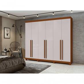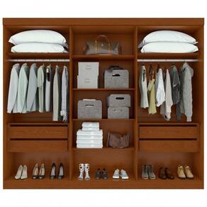 Características: Produto em MDP com chapas de 15mm; Pintura e acabamento em micro textura; Dobradiças metálicas de 35mm; Puxadores em MDF; 06 portas; Interno diferenciado com 08 prateleiras; Maleiro individual; Gavetas com corrediças telescópicas; Gavetas com distanciadores em MDF; Espaço para sapatos. Vantagens/Benefícios: Produzido com equipamentos de alta tecnologia; Produto avaliado e aprovado por um rigoroso controle de qualidade; Fácil montagem e manual de montagem simplificado; Kits e acessórios vendidos separadamente, dando maior flexibilidade para o produto; Acabamento com toque aveludado; Boa profundidade, possibilitando amplo espaço interno para organização; Gavetas grandes e espaçosas com corrediças telescópicas; Distanciador de gavetas em MDF, dando a elas maior durabilidade; Portas com espaços independentes; Espaço para sapatos; Interno do produto da mesma cor do externo.
