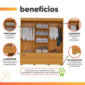 DIFERENCIAL: Amplo espaço interno / 6 gavetas externas espaçosas / Corrediças telescópicas metálicas / Pintura Uv de alta qualidade / Cabideiros em madeira revestidos de Pvc