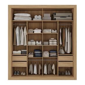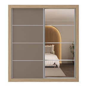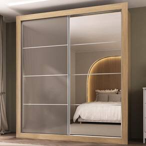 Especificações técnicas: Altura 218cm | Largura 200cm | Profundidade 51cm Material: MDP (12/15mm) Acabamento: Acetinado (cerca de 20% de brilho) Puxadores/Cabideiros: Alumínio Possui Espelhos: Sim Corrediças: Telescópicas