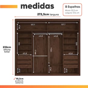 MEDIDAS DE CADA ESPELHO (8 Lâminas):