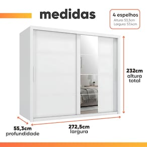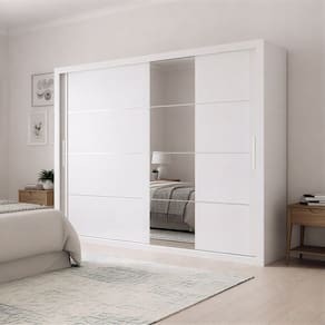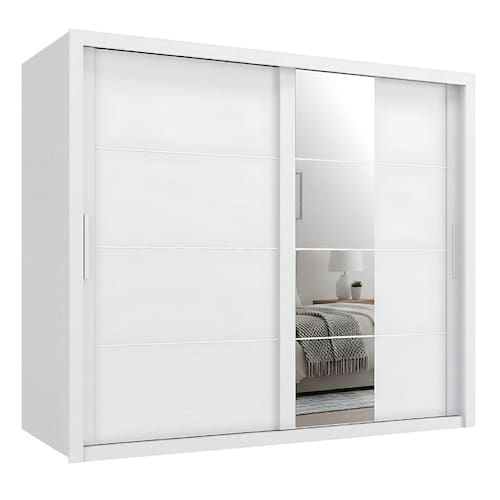 Guarda Roupas Casal com Espelho 2 Portas de Correr 6 Gavetas Modena - Branco