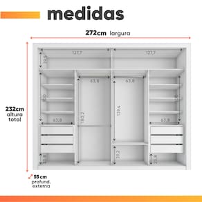 O Guarda Roupa Modena foi desenvolvido para aliar praticidade e elegância, proporcionando um espaço amplo e bem distribuído para organizar suas roupas, edredons, travesseiros e calçados com eficiência. Seu design moderno e sofisticado conta com duas portas de correr, sendo uma delas com um espelho amplo, agregando funcionalidade e sofisticação ao ambiente. Com seis gavetas espaçosas, as duas primeiras de cada lado possuem divisórias inteligentes, para armazenar pequenos itens com mais organização. Além disso, suas corrediças telescópicas garantem uma abertura suave e completa, proporcionando mais conforto no uso diário! O Guarda Roupa Modena é a escolha perfeita para quem busca beleza, qualidade e durabilidade em um único móvel.