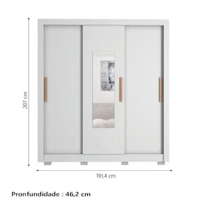 Certifique-se de tudo antes de finalizar a compra, evitando assim futuros desagrados ou imprevistos com a entrega. MEDIDAS:: [ A ] = 207 cm [ L ] = 191,4 cm [ P ] = 46,2 cm | MEDIDAS DO ESPELHO:: [ A ] = 108,3 cm [ L ] = 32 cm | PESO:: 100,79 kg | PESO SUPORTADO:: 110 kg | GAVETAS SUPORTAM ATÉ:: 2 kg | PRATELEIRAS SUPORTAM ATÉ:: 3 kg | MODELO:: Guarda Roupas Casal com Espelho 3 Portas de Correr 2 Gavetas Paris | MARCA:: Caemmun | ACABAMENTO:: Brilho | TIPO DE PINTURA:: Perfect | MATERIAL DA ESTRUTURA:: MDP | ESPESSURA DO MATERIAL:: 12mm e 15mm | PORTAS:: 3 | TIPO DE PORTA:: Correr | POSSUI ESPELHO:: Sim | GAVETAS:: 2 | CORREDIÇAS:: Metálicas | PRATELEIRAS:: 2 | MATERIAL DO PUXADORES:: MDF | TIPO DE PUXADOR:: Retangular | CABIDEIROS:: 1 | MATERIAL DOS CABIDEIROS:: Alumínio | MATERIAL DOS PÉS:: PVC | PÉS:: 8 | TIPO DE PÉS:: Retangular | GARANTIA:: 3 Meses | DIFERENCIAL:: Pés em PVC que não agridem o piso, Puxadores em MDF, espelho amplo. | INSTRUÇÕES E CUIDADOS:: Limpar com pano levemente umedecido com água e sabão neutro | AVISO:: A Esplanada Móveis se responsabiliza pela entrega dos produtos adquiridos até a porta de entrada ou portaria do endereço indicado, se a portaria do condomínio permitir, as entregas são efetuadas no piso térreo e é de responsabilidade do cliente. | ALTURA:: 207 | LARGURA:: 191,4 | PROFUNDIDADE:: 46,2 | MATERIAIS DA ESTRUTURA:: MDP | REQUER MONTAGEM:: SIM Cor: Branco