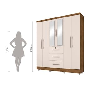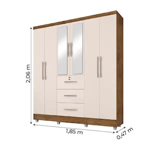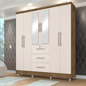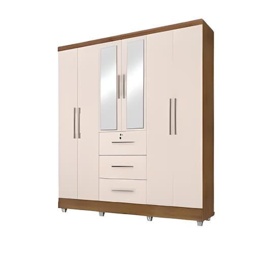 O Roupeiro Tókio com espelho6 portas, possui 4 prateleiras,3 cabideiros e 3 gavetas externas, sendo uma com chave. O modelo transmite conforto e beleza ao ambiênte. Possui pintura UV, com verniz brilhante, que alta resistência e durabilidade ao produto!