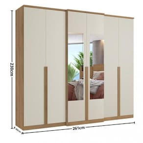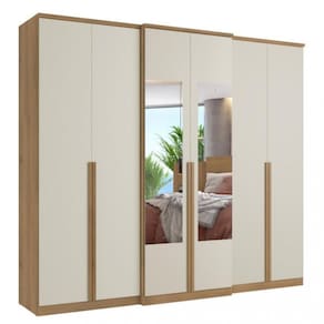 Guarda Roupas Casal com Espelho 6 Portas 4 Gavetas Valência Glass THB - Off White