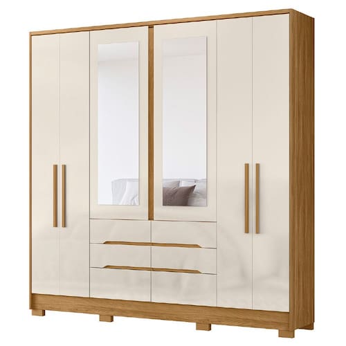MODELO: Guarda Roupas Casal Com Espelho 6 Portas 6 Gavetas San Francisco