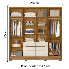 O Guarda Roupas Casal San Francisco é a solução perfeita para quem busca aliar estilo e funcionalidade. Conta com 6 portas e 6 gavetas - que possuem corrediças telescópicas e puxadores no estilo cava -, oferece amplo espaço para armazenar roupas, cobertores, sapatos, acessórios e muito mais. Seu design inteligente permite a organização eficiente de roupas longas, graças aos cabideiros resistentes. As portas centrais, equipadas com espelhos, acrescentam funcionalidade e ampliam o ambiente, os puxadores são feitos de MDF, enquanto os pés de PVC proporcionam resistência e facilitam a limpeza. Confeccionado com materiais de qualidade garantindo maior durabilidade e resistência.