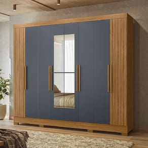 Guarda Roupas Casal Com Espelho Ripado 8 Portas 4 Gavetas Diamante Moval Madeirado / Cinza