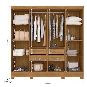 Certifique-se de tudo antes de finalizar a compra, evitando assim futuros desagrados ou imprevistos com a . MEDIDAS:: A = 212 cm L = 236 cm P = 47 cm | MEDIDAS DOS PÉS:: A = 5 cm L = 10 cm P = 4,5 cm | MEDIDAS DOS ESPELHOS (cada um):: A = 70 cm L = 20 cm P = 0,3 cm | PRATELEIRAS SUPORTAM ATÉ:: 6 kg | CABIDEIROS SUPORTAM ATÉ:: 6 kg | PESO:: 142,61 kg | MARCA:: Moval | MATERIAL:: MDP | ESPESSURA DO MATERIAL DA ESTRUTURA:: 12mm | GAVETAS SUPORTAM ATÉ:: 6 kg | MODELO:: Guarda Roupas Casal Com Espelho Ripado 8 Portas 4 Gavetas Diamante | PORTAS:: 8 | DOBRADIÇAS:: Metálicas | GAVETAS:: 4 | CORREDIÇAS:: Metálicas | PRATELEIRAS:: 6 | MATERIAL DO CABIDEIRO:: Alumínio | PUXADORES:: 8 unidades, em MDF | TIPO DE PORTA:: Bater | CABIDEIROS:: 2 | POSSUI ESPELHO:: Sim, 4 lâminas | PÉS:: 8 unidades, em PVC | GARANTIA:: 6 Meses | DIFERENCIAL:: Portas com detalhes ripados autênticos, amplo espaço de armazenamento, puxadores em MDF, espelhos nas portas centrais | AVISO:: A Esplanada Móveis se responsabiliza pela dos produtos adquiridos até a porta de entrada ou portaria do indicado, se a portaria do condomínio permitir, as são efetuadas no piso térreo e é de responsabilidade do cliente. | ALTURA:: 212 | MANUAL DE MONTAGEM:: Incluso | LARGURA:: 236 | PROFUNDIDADE:: 47 | MONTAGEM:: Necessita Montagem | Cor: Madeirado / Cinza