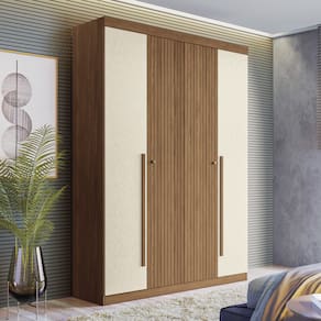 O guarda roupas Buriti, conta com estilo moderno e sofisticado. Possui 4 portas e 2 gavetas, proporcionando grande espaço de armazenamento. Seu acabamento com detalhes usinado frisados verticais nas portas, traz um visual bastante elegante e também conta com pintura reverse aplicação de verniz com profundidade, facilita a limpeza do móvel e corrige imperfeições. Internamente, ele possui cabideiros, prateleiras para itens e roupas, e espaço para calçados, garantindo bastante espaço e organização. Seu tamanho garante praticidade, facilitando no uso diário. Este modelo é ideal para quem busca otimizar o armazenamento no quarto de forma eficiente e com um design bastante moderno.