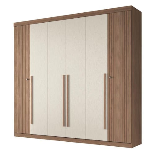 Guarda Roupas Casal Detalhes Frisados Com 6 Portas 4 Gavetas Buriti Andirá Madeirado / Areia