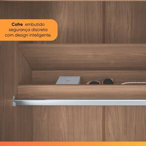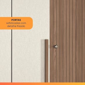 DIFERENCIAL: Gavetas com corrediças telescópicas, cofre embutido, cabideiros em alumínio, puxadores pontuais em ABS, puxadores em MDF revestido e portas em MDF com detalhe usinado ripado.