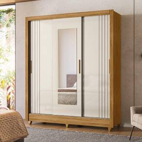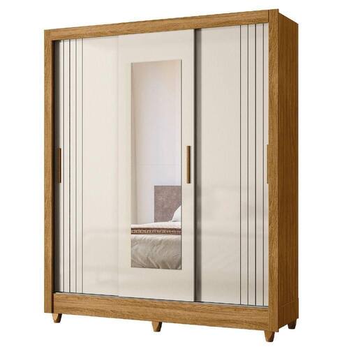 Guarda Roupas Casal Frisado C/ Espelho 3 Portas De Correr 2 Gavetas Bolívia Madeirado/off White Madeir/off