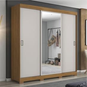 Certifique-se de tudo antes de finalizar a compra, evitando assim futuros desagrados ou imprevistos com a entrega. MEDIDAS:: [ A ] = 206,5 cm [ L ] = 181,5 cm [ P ] = 54,9 cm | MEDIDAS DE CADA ESPELHO (2 lâminas):: [ A ] = 89 cm [ L ] = 61 cm [ P ] = 0,6 cm | ALTURA DOS PÉS:: 5 cm | PESO:: 121,15 kg | PESO SUPORTADO:: 70 kg | GAVETAS SUPORTAM ATÉ:: 3 Kg | PRATELEIRAS SUPORTAM ATÉ:: 5 Kg | MODELO:: Guarda Roupas Casal com Espelho 3 Portas de Correr 4 Gavetas Áustria | MARCA:: Notável | TIPO DE PINTURA:: Pintura UV | ACABAMENTO:: Brilho | MATERIAL:: MDP | ESPESSURA DO MATERIAL:: 12 e 15 mm | PORTAS:: 3 (Portas de correr) | DOBRADIÇA:: Metálica | POSSUI ESPELHO:: Sim, 2 lâminas | GAVETAS:: 4 | PRATELEIRAS:: 6 | QUANTIDADE DE CABIDEIRO:: 2 | CABIDEIROS:: Alumínio | CORREDIÇAS:: Telescópicas | PUXADOR:: PVC | QUANTIDADE DE PÉS:: 8 | MATERIAL DOS PÉS:: Plástico | GARANTIA:: 3 meses | DIFERENCIAL:: Porta de correr, corrediça telescópicas proporcionando deslize suave, amplo espelho. | INTRUÇÕES E CUIDADOS:: Para maior durabilidade, recomenda-se que a limpeza dos móveis seja feita da seguinte forma: com pano limpo e levemente umedecido em água e sabão neutro. Em seguida, deverá ser passado um pano limpo e seco. | AVISO:: A Esplanada Móveis se responsabiliza pela entrega dos produtos adquiridos até a porta de entrada ou portaria do endereço indicado, se a portaria do condomínio permitir, as entregas são efetuadas no piso térreo e é de responsabilidade do cliente. | ALTURA: 206,5 | LARGURA: 181,5 | PROFUNDIDADE: 54,9 | MATERIAIS DA ESTRUTURA: MDP | REQUER MONTAGEM: SIM Cor: Madeir/Off