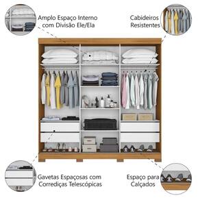 Se você está procurando por um guarda roupa que ofereça amplo espaço e estilo, o Guarda Roupas Casal Áustria é a escolha perfeita. Com 3 portas deslizantes, este móvel oferece fácil acesso a todos os seus pertences. As quatro gavetas internas com corrediças telescópicas permitem uma organização eficiente de seus itens. Além disso, o Guarda Roupas Casal Áustria oferece muito espaço para você armazenar suas roupas, sapatos, acessórios e muito mais. Um toque especial deste guarda roupa são os espelhos centrais, que não apenas adicionam um elemento de estilo, mas também são práticos para ajudá-lo a escolher o look perfeito para o dia. Com o Guarda Roupas Casal Áustria, você terá tudo o que precisa para manter sua rotina de estilo e organização.