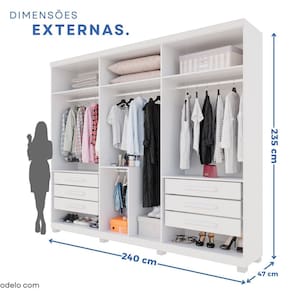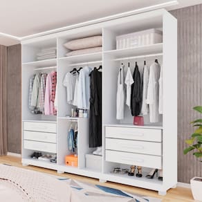 O Closet Florianópolis é uma escolha confiável para quem busca durabilidade e funcionalidade. Com sua estrutura sólida em chapa de 15 mm que garante resistência e confiabilidade, com amplo espaço interno, possui espaço para vestidos, oferece organização e praticidade. Seu design inteligente proporciona montagem inteligente, com detalhes como cabideiro em alumínio, e corrediças telescópicas e pés, torna-o uma opção com excelente custo-benefício para qualquer ambiente. Acabamento da Prateleira: Pintura UV Escala de Brilho da Prateleira: Fosco Acabamento da Gaveta: Pintura UV Possui Organizador de Gaveta: Não Altura dos Pés: 7 cm Altura Máxima dos Pés: 7.0000 Ambiente Principal: Quarto codigo_ean: 7900288106247 Complexidade da Montagem: Média: pode ser montado por mais de uma pessoa e/ou necessite de maior conhecimento para montagem Cor: Branco Cor do Produto: Branco Escala de Brilho: Fosco Espessura da Estrutura (mm): 15 mm Espessura das Prateleiras (mm): 15 mm Espessura do Fundo (mm): 3 mm Espessura do Fundo das Gavetas (mm): 3 mm Itens Inclusos: 1 Guarda Roupa + Manual de Montagem + Kit Ferragens Linha ou Coleção: Florianópolis Manual de Montagem e Instalação: https://product-hub-prd.madeiramadeira.com.br/983130/documents/4da71fc5-7b8c-41e7-9228-e09720a4e82d2766145493817429989354317.pdf Marca: Espresso Móveis Material da Gaveta: MDP Material da Prateleira: MDP Material dos Pés: PVC Material Principal: MDP modular: Não Necessita Montagem: Sim Origem do Produto: Nacional Peso: 111 kg Peso Máximo por Gaveta: 3 kg Peso Máximo por Prateleira: 5 kg Possui Calceiros: 01 Possui Espelho: Não Possui Pés: 08 Possui Portas: Não Possui Prateleiras: Sim Produto Montado: Sim Recomendações de Uso, Manutenção e Limpeza: Limpeza com pano macio e levemente umedecido. Não utilizar solventes a base e de inflamáveis. Não utilizar produtos abrasivos. Sistema de Montagem: Parafusos e cavilhas Tipo de Corrediça da Gaveta: Metálica Telescópica Tipo de Gaveta: Externa Tipo de Guarda-Roupa: Closet Tipo de Puxador da Gaveta: Externo