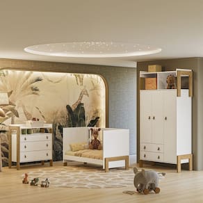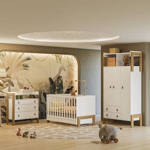 A Cômoda Infantil 3 Gavetas com Nichos Refúgio complementa o espaço do seu filho com versatilidade e charme. Com três gavetas espaçosas, corrediças telescópicas suaves e um nicho aberto, oferece espaço de armazenamento funcional. Seus puxadores inspirados no couro adicionam um toque de estilo, enquanto os pés em MDF garantem estabilidade. Equipada com sistema anti-tombamento e acabamento em pintura UV, combina segurança e elegância em um único móvel.