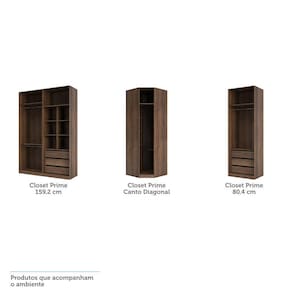 A linha de roupeiros projetados Prime é o sonho de consumo dos projetos de Closets. Produto 100 em MDP 15mm com acabamento impecável e rápida montagem. Possui 6 gavetas com corrediças telescópicas em três estágios, oferecendo para abertura total das gavetas. E 4 cabideiros em alumínios, além de maleiros que proporcionam melhor organização de objetos e peças volumosas. Indicamos o uso desse conjunto conforme a imagem, porém é muito versátil e possui a montagem em 3 módulos individuais, garantindo à você montá-lo de acordo com suas preferência e necessidade. Aproveite essa oportunidade para transformar seu sonho em realidade. Adquira agora mesmo o seu. *Ressaltamos que este conjunto não possui portas. São produtos projetados para closets abertos.*