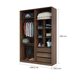 ? Guarda Roupa Closet Aberto/Sem Portas 3 Gavetas 2 Cabideiro 159,2cm Prime 236cm x 159,2cm x 54,5cm -AxLxP- - Peso: 108,3kg