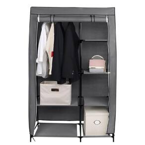 Este guarda-roupa dobrável é uma solução elegante e prática para espaços compactos, oferecendo amplo espaço para pendurar roupas e uma grande seção com prateleiras para organização adicional.