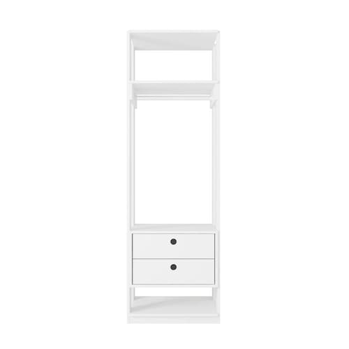 Além de ser produzido em MDP 15mm, o Guarda Roupa possui Cabideiro em Alumínio, 2 Gavetas com Corrediças Telescópicas, Puxador de Furo, 4 Pés